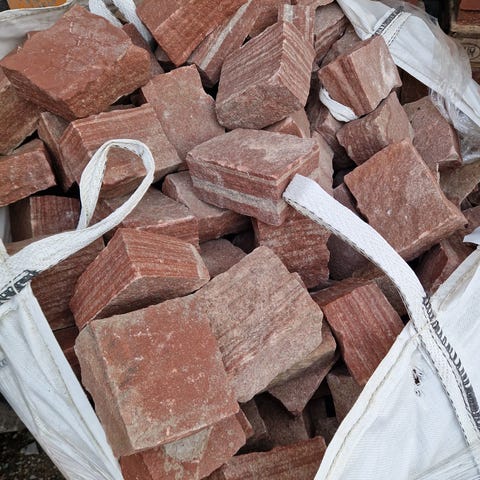 Natursten skivor i grå nyans. Blandade storlekar och tjocklekar, oregelbundna former. Lämpliga för exempelvis markbeläggning, murar, trappsteg eller andra bygg- och trädgårdsprojekt där natursten önskas. Levereras staplade på pall enligt bilderna. Ca 300kvm finns . Stenarna är oregelbundet formade och 23mm tjocka.