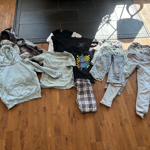 Flerfärgat set med olika plagg, bland annat tröjor, byxor och underkläder. Passar som basgarderob för vardagsbruk.