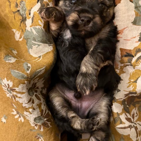 Pappa är en svart toypudel som vi lånat, han är frisk och social.