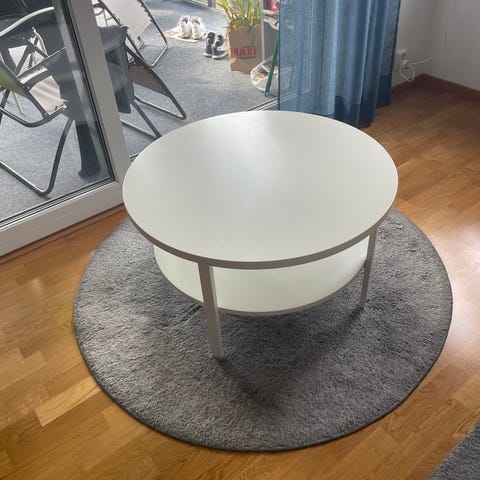 Fint och gediget runt matbord med iläggsskiva säljes i shabby chic stil, avskav finns!