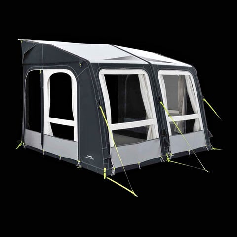 Vera Bohus Air luftförtält för husbil. Tältet är avsett att monteras på husbilens sida för att skapa ett extra uterum. Modellen har stora fönsterpartier med klar plast och myggnät, samt dörröppning framtill. Konstruktionen bygger på luftkanaler i stället för traditionella tältstänger. Passar för dig som vill ha ett flexibelt förtält vid resor med husbil.
