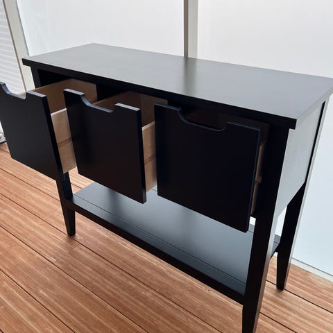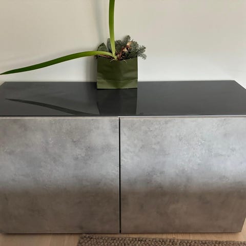 IKEA sidebord svart med hyllplan och lådor