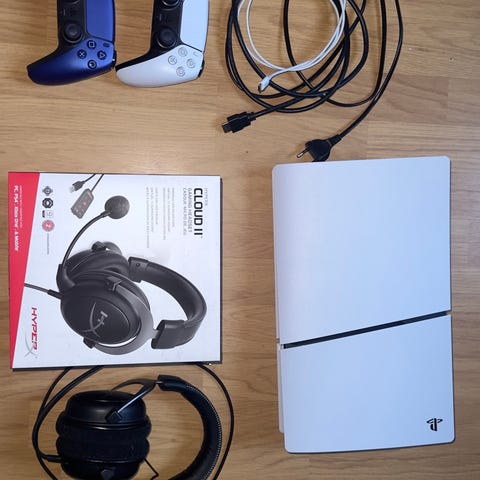 Sony Playstation trådlöst gamingheadset och handkontroll. Headsetet är trådlöst med vadderade kåpor och bygel. Tillbehör som USB-mottagare och kabel ingår enligt bild. Handkontrollen är av standardmodell för Playstation med två styrspakar, styrkors och knappar. Utrustningen är avsedd för spel på kompatibla Playstation-konsoler eller dator beroende på stöd.