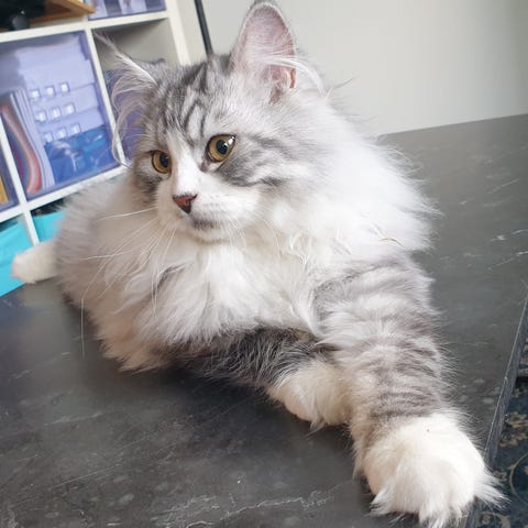 Vår katt är väldigt lugn, van vid barn och älskar att bli klappad.