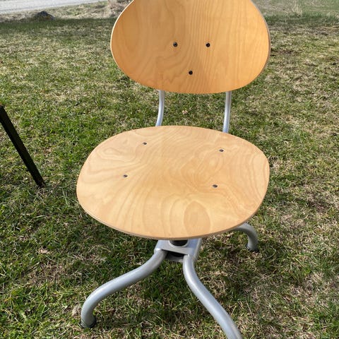 En mycket välbevarad äldre industriell arbetsstol. Märke KEVI, design, Jörgen Rasmussen, dansk. Stolen är i funktionsdugligt skick skulle må bra av lite träolja. Grön och grå metall, mahogny, annat träslag, mycket fin patina.
