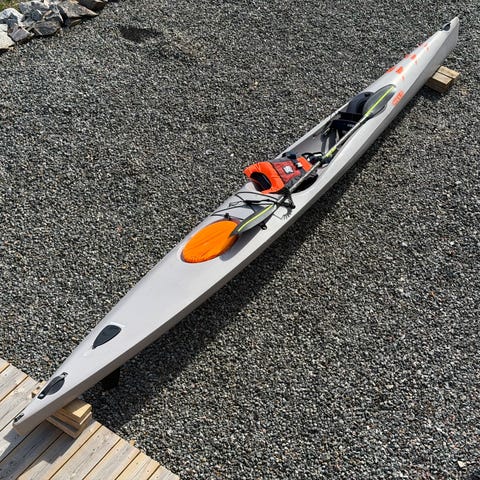 Kajaken är totalt vindbalanserad, vilket gör att den fungerar mycket väl utan roder eller skädda under normala förhållanden. Mycket fint skick!