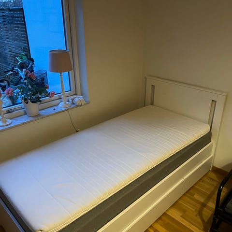 Den är i superfint skick, som ny. Originalpris för säng och madrass är 2790 kr. Säljs till bra pris pga vi behöver bli av med den så snart som möjligt.