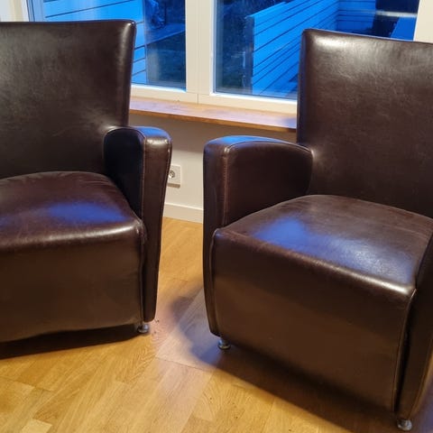 2st IKEA Arvika snurrfåtöljer med varsin fotpall, svart skinn, bra skick