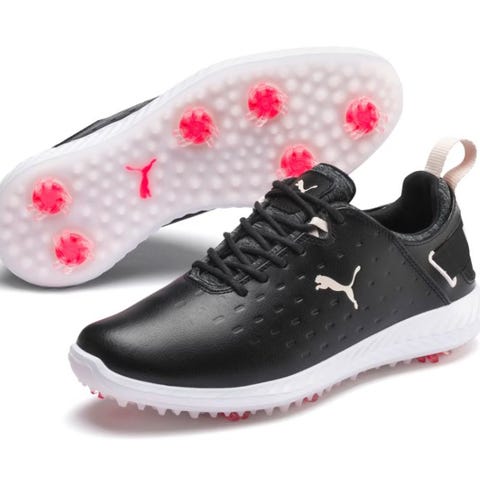 En golfsko i läder som kombinerar premiumstil med kvalitetsprestanda.