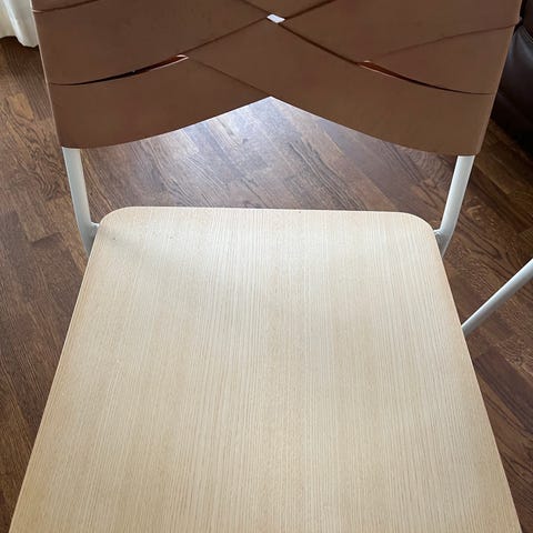 Stol i ok skick säljes, några mindre märken. Svart sits i trä och läder på ryggen. Nypris 5000kr