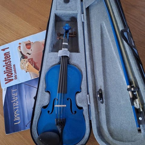 Säljer en jättefin liten åttondelsfiol med stråke och violin etui som passar barn i åldern ca 5–7 år,