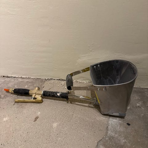 Vattenkopp för djur i blå färg. Utrustad med mekanism för vattenpåfyllning. Lämplig för montering i stall eller hage för att förse djur med dricksvatten.