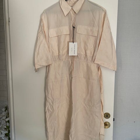 Helt ny och oanvänd Filippa K vardagsklänning i brun färg. Klänningen är i storlek 40 och tillverkad i polyester. Modellen har enkel, rak design med kortare ärm och längd som går ned mot vaden. Passar som vardagsklänning eller enklare klänning till arbete och fritid.