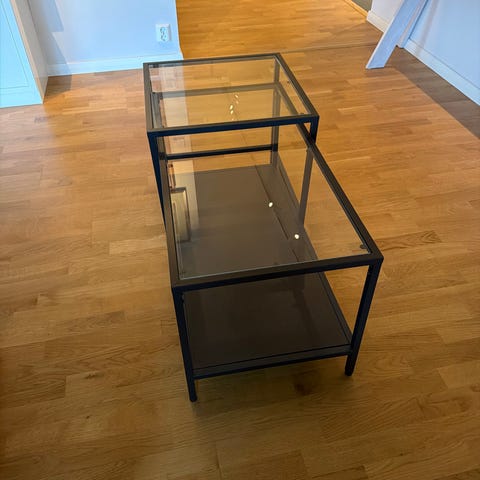 Den enkla och ärliga designen på satsborden VITTSJÖ skapar ett öppet och luftigt uttryck. Du kan alltid välja att använda dem var för sig, tillsammans eller skjuta in det lägre under det högre bordet.