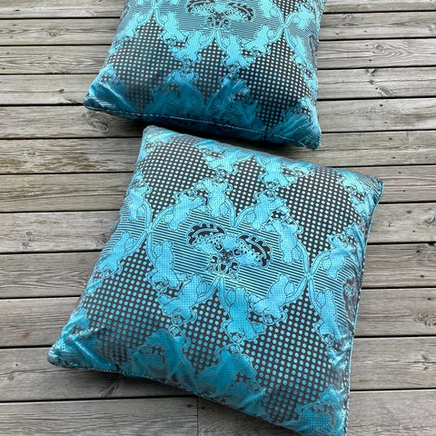 9 st blå/vita dynor i original.