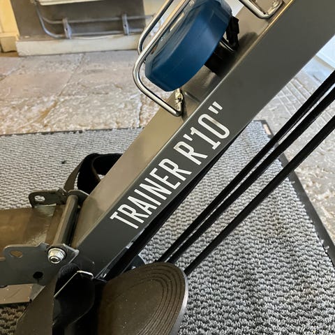 Titan Life roddmaskin med träningsdator. Utrustad med fotstöd med justerbara remmar och ett säte som glider längs en rak skena. Träningsdatorn visar grundläggande träningsdata som tid och antal roddtag. Passar för inomhusträning av kondition och styrka för hela kroppen.