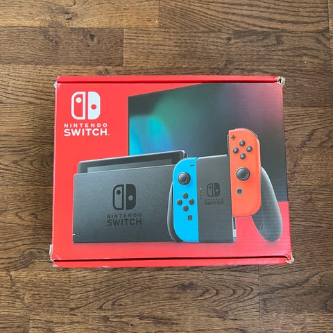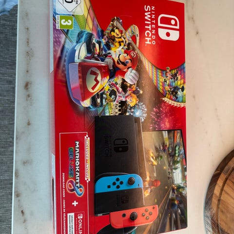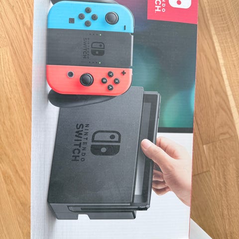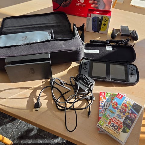 Allt finns: dockningsstation, Joy-Con-handkontroller, laddare, HDMI kabel och förpackning.