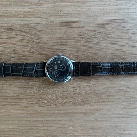 En mycket stilren modell från japanska Orient – minimalistisk design med premiumkänsla. Liknar stilen hos Daniel Wellington men med bättre byggkvalitet.