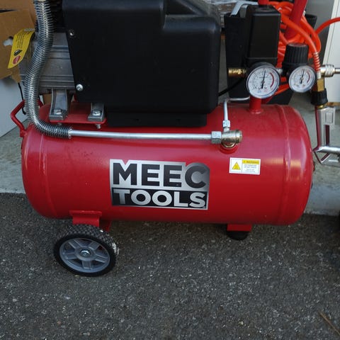 Meec Tools luftkompressor med 24 liters tank. Effekten är 1,1 kW (1,5 hk) och kompressorn drivs med 230 V, 50 Hz. Max arbetstryck är 8 bar. Kapacitet 180 l/min och 2850 varv/min. Utrustad med manometer, tryckregulator och hjul för enklare förflyttning. Lämplig för tryckluftsverktyg, pumpning och enklare arbeten i garage eller hobbyverkstad.