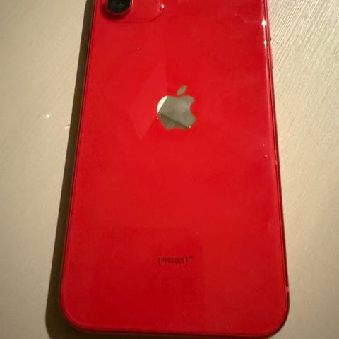 Säljer iPhone 11 (Product Red) med 64GB intern lagring.