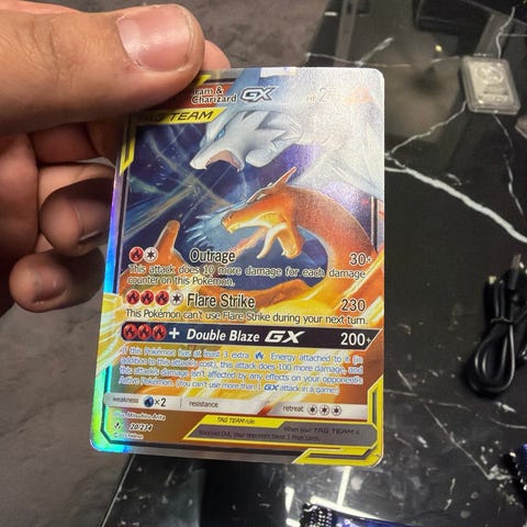 Pokémon Reshiram & Charizard GX Tag Team samlarkort guld holografisk