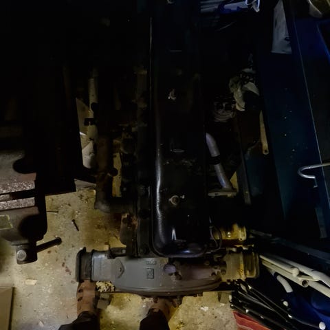 En stor ledramp som sitter monterad på ett rakräcke från volvo 250.
