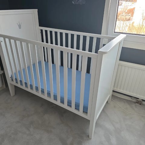 Madrass, spjälskydd och madrassskydd ingår.