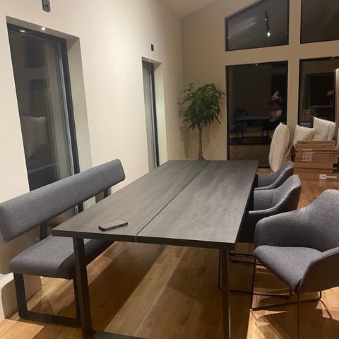 Stilrent soffbord som ingår i Jysks Vonge-serie. Cementskiva och pulverlackade ben. Ligger i sin kartong då vi inte behöver det.