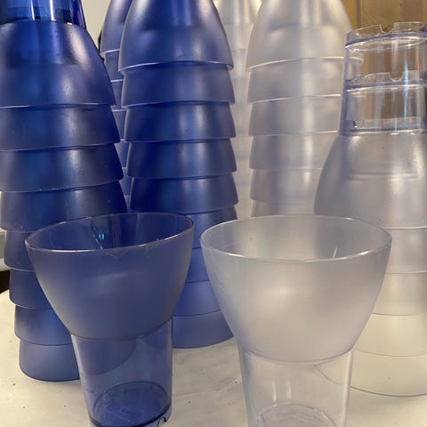 Skänkes Glasflaskor, Filterkanna Dafi, kaffemugg Stelton, vattenflaska