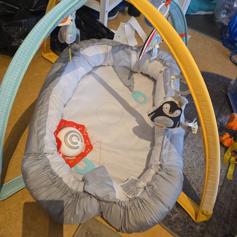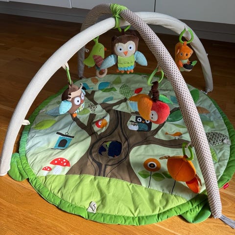 Babygym från Skiphop med alla tillbehör kvar. Inga fläckar eller hål och ovansidan är i fint använt skick. Undersidan har dock blivit nopprig efter tvätt (går att tvätta i tvättmaskin). Kan användas som lekmatta när barnet blir större. Hämtas på Kalkudden Mariefred.