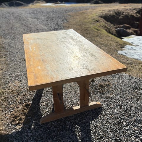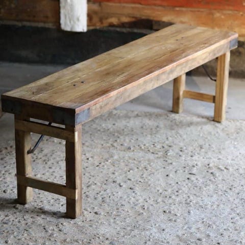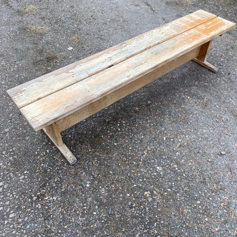 Retro bänk i furu med ribbad sits från 1960-/70-tal i fint bruksskick se bilder.
