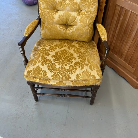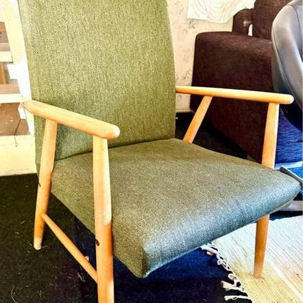Fåtölj grön tygklädsel trästomme