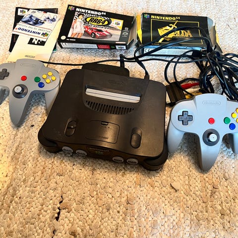 N64 Konsol + Memory Expansion + Power Kabel + TV Kabel + 2 Kontroller Med 1 Memory Pak
