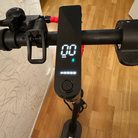 KuKirin (Kugoo Kirin )G2 elskoter i svart utförande med orangea detaljer. Modellen har digital display på styret som visar hastighet och batterinivå. Elskotern är utrustad med grovmönstrade däck och bred fotplatta för stabil körning. Drivs av elmotor med inbyggt batteri och har vikbar konstruktion för enklare förvaring och transport.