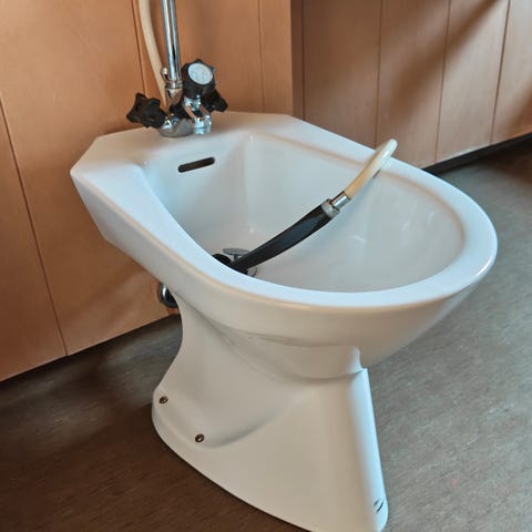 Bidé i vit porslin - 55 cm djupt och 35 cm brett.