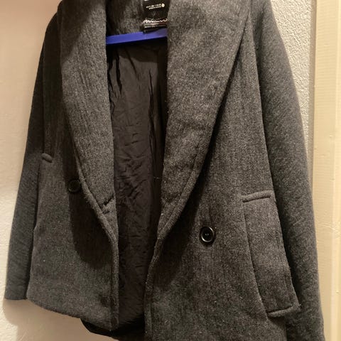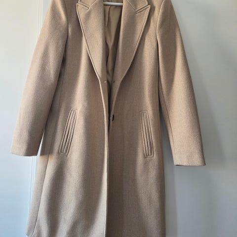 Säljer en stilren kappa från Zara i klassisk kamelfärg. Modellen är rak med knappar framtill och passar både till vardag och mer uppklätt.