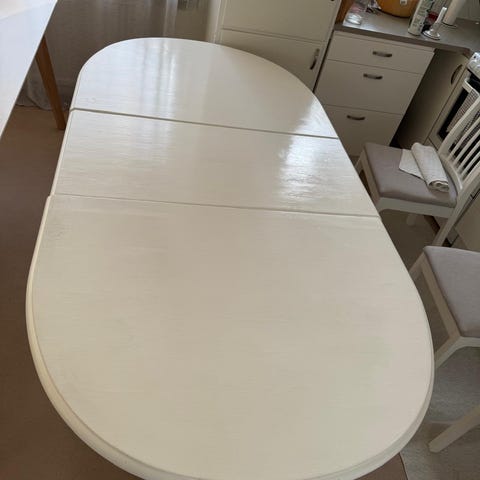 Bordet har en iläggsskiva (33cm) som enkelt kan sättas i mitten för att göra det längre vid behov.