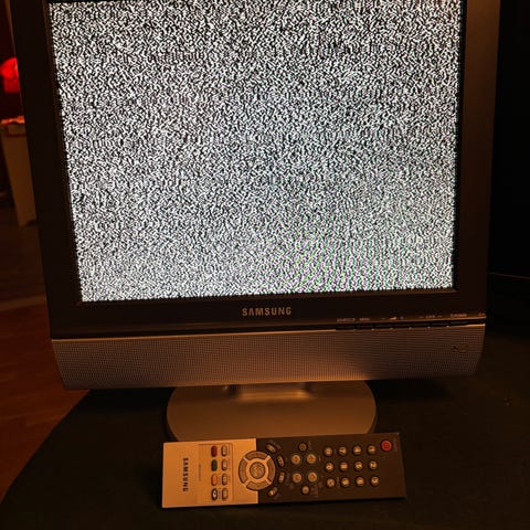 LG 32LS359T tv med 32 tum skärm i vit färg. Modellen har inbyggd fot och anslutningsmöjligheter enligt märkplåten på baksidan (se bild).