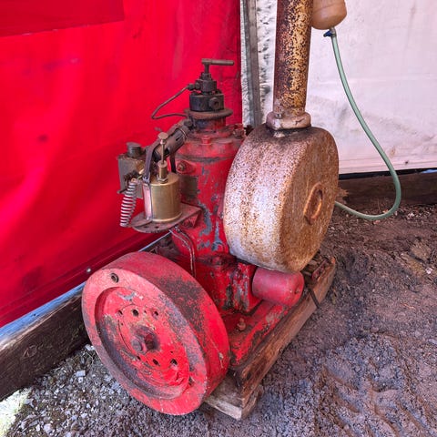 En oljetank för mobil smörjolja. Höjd 60 cm, bredd 26 cm och djup 48 cm.
