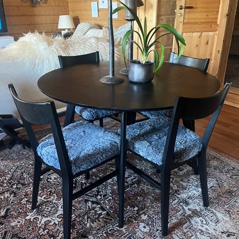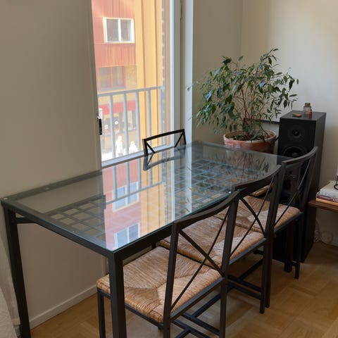 Bord och fyra stolar. Är nog egentligen utemöbler men vi har haft dem inomhus.