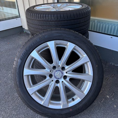 Originalfälgar till SL500, bra skick, lite smårepor från förvaring annars knappt använda. Däck (Michelin pilot sport) från 2004 sitter på med bra mönster.