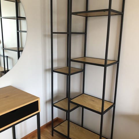 Två stycken möbler som jag har gjort om och monterat hyllplan med rör i utmed kanterna.