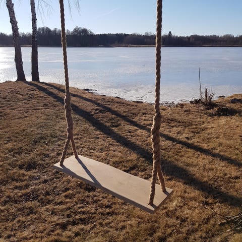 Gungställning i trä med flera sittdelar – stabil & redo för lek