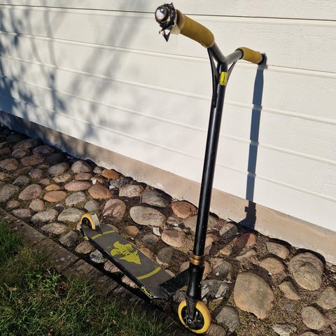 Ett stycke elsparkcykel för barn, topphastighet 20 km/h men kan ändras. Har funkat bra för grabben, men nu har laddaren kommit bort och behöver köpas - finns för billig peng på diverse butiker på internet. Kan skickas inom Sverige.