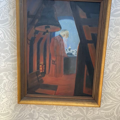 Tavlan säljs med ram och är redo att hängas upp direkt.