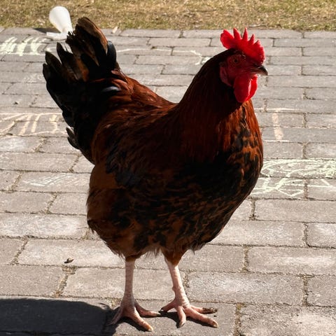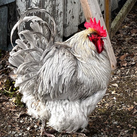 Blandraserna med CCL är som en vanlig tupp i storlek. En är friserad, alltså lurvig.