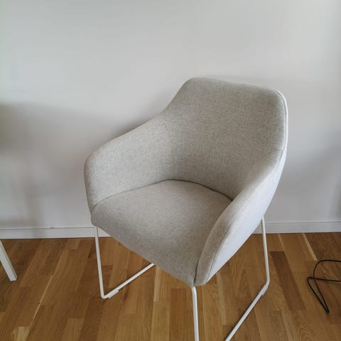 Säljer 4 st vita stolar från Mio i hård plast, metallben och mjuk grå sittdyna. Säljes tillsammans. Finns vid Boviksbadet Skellefteå.
