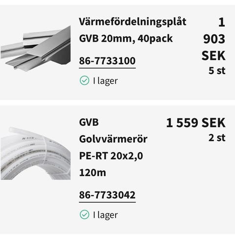 Säljer 2st 120m rullar med 20mm golvvärme slang.