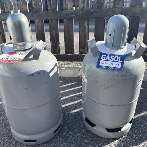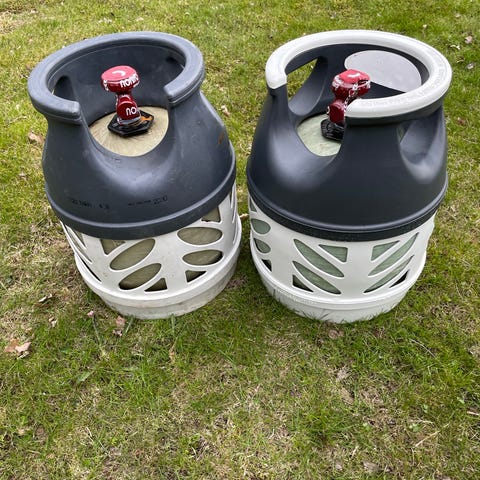 Gasolflaskor i olika storlekar . Passar exempelvis för användning till grill, husvagn, husbil. Säljes som ett paket. Samtliga tuber är tomma.