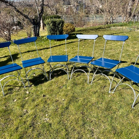 Säljer nu dom 2 sista Grythyttan stolar med skönt gung i. Har funnits i familjen sedan början av 70 - talet. Dåligt målade men för den som vill är det bara att skrapa bort färgen och slipa ner om man vill, dom har originalbrädorna kvar som är okej. Nån bräda är lös. 2500:- styck eller 4500:- för båda. Står inte i vägen då dom är stapelbara så har inte bråttom att sälja. Skambud och onödiga kommentarer besvaras inte. Skickas inte, hämtas på plats. Finns ca 1 mil väster om Örebro.